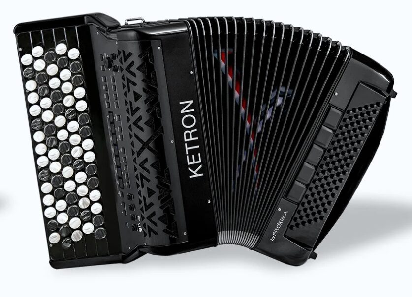 Ketron B46: É um acordeão cromático de botões completo, mas em formato digital. Embora maior que uma concertina, oferece a versatilidade de ter centenas de instrumentos num só