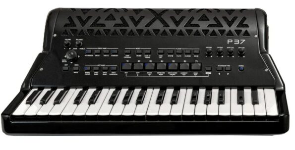 • O Ketron P37 é um acordeão digital tipo piano projetado para músicos profissionais e estudantes avançados que procuram o equilíbrio entre a tradição acústica e a tecnologia moderna. Fabricado com corpo de madeira de alta qualidade, utiliza componentes mecânicos idênticos aos de um acordeão acústico para preservar a sensação tátil real.