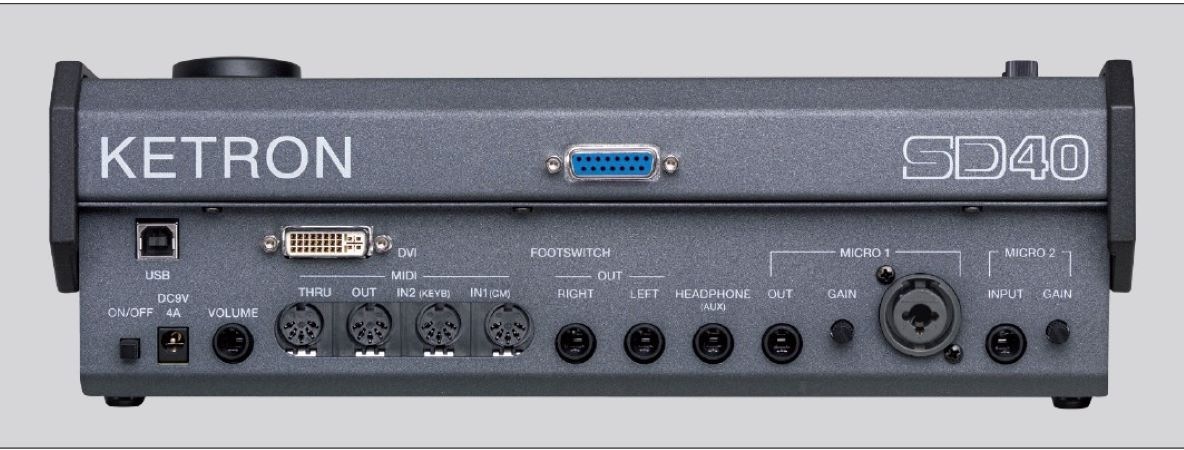 SAÍDA Estéreo Esquerdo/Direito, Pedal de Volume, Micro Out.